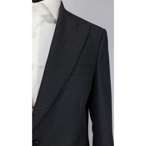 کت و شلوار اداری یقه انگلیسی طرح چهارخانه ذغالی